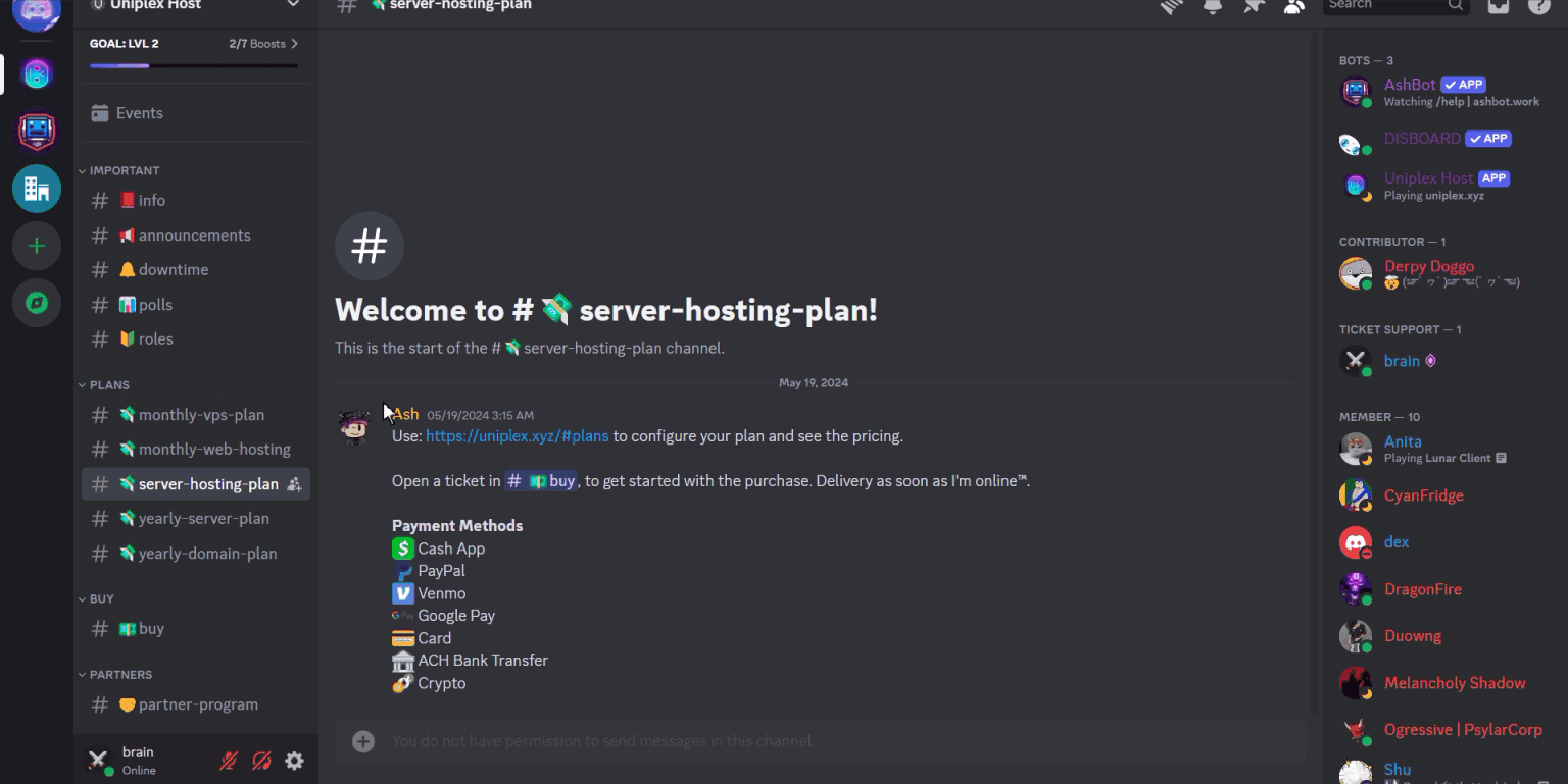 5. You can manage the server with the log-in provided by the bot in the ticket.